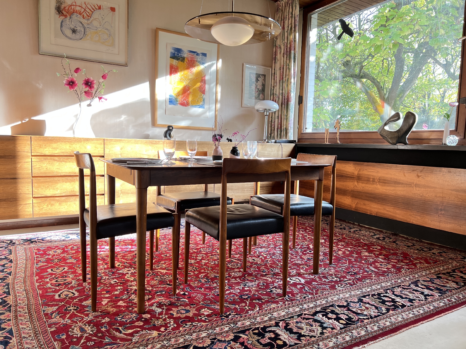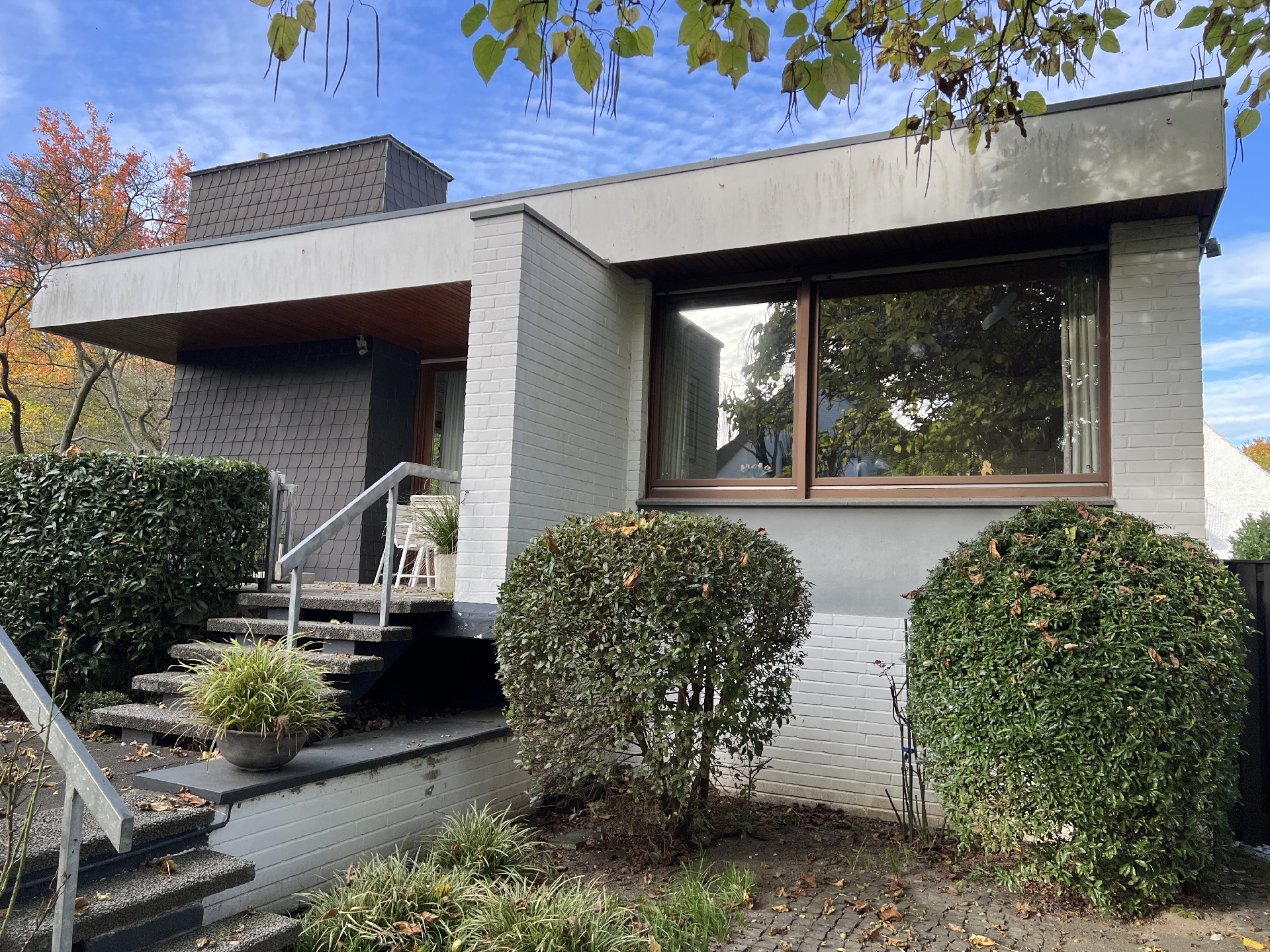 Dieses freistehende Einfamilienhaus aus dem Jahr 1972 präsentiert sich als architektonisch reizvolle Immobilie mit Split-Level-Grundriss, großzügigem Raumangebot und einer traumhaft grünen Lage. Das Anwesen kombiniert den Charme Mid-Century-Baustils mit einem vielfältig nutzbaren Raumangebot – ideal für Familien, die viel Wohnfläche, Ruhe und Natur gleichermaßen schätzen. Bereits bei der Ankunft fallen die großzügige Einfahrt mit ausreichendem Platz für mehrere Fahrzeuge sowie die überlange Garage ins Auge. Diese unterstreichen den großzügigen Charakter des Hauses.