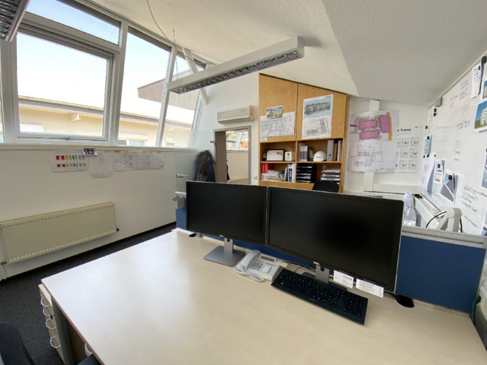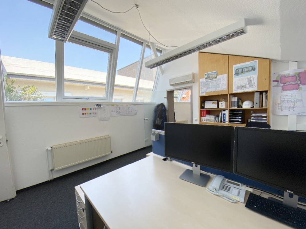 Aufgrund der Sheddach-Konstruktion bieten die Büroräume eine traumhafte Belichtung; ideal für künstlerische und kreative Berufe! Über Brüstungskanäle sind alle Räume mit einer CAT-7 Verkabelung ausgestattet. Die Böden sind mit einem strapazierfähigen Teppichboden versehen.