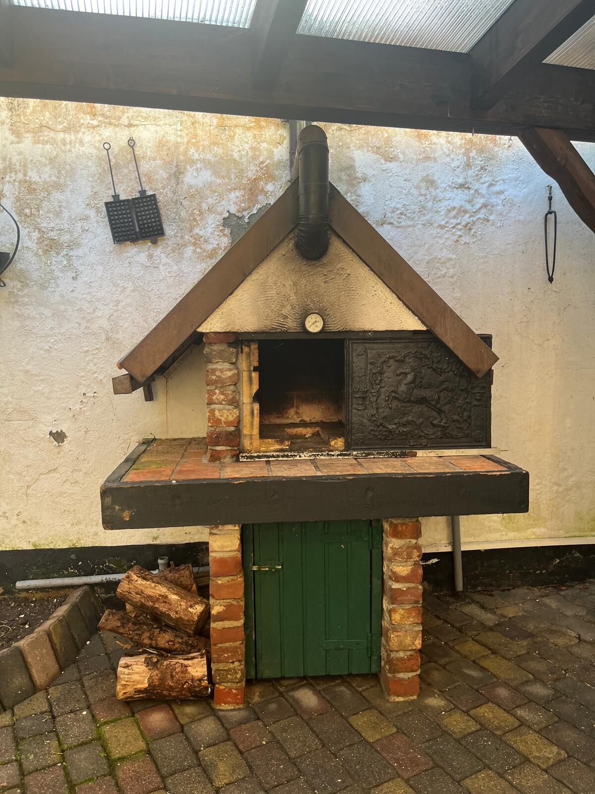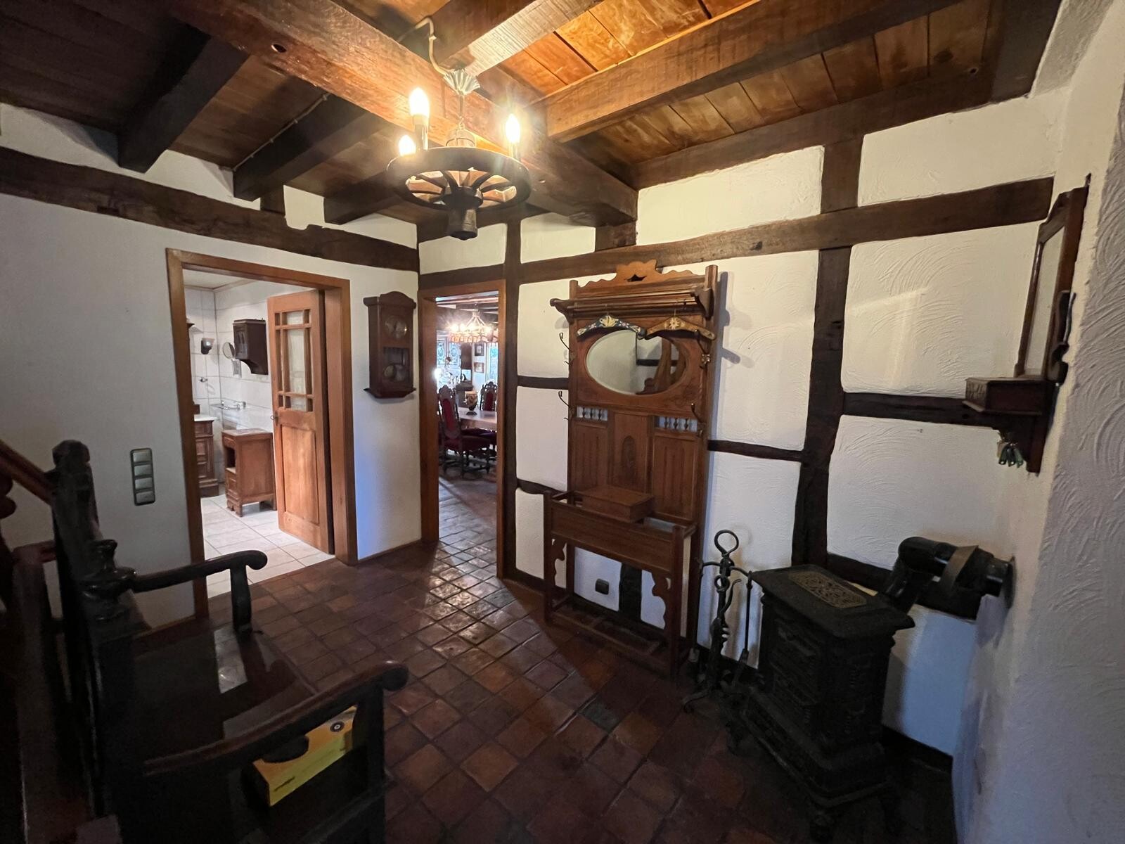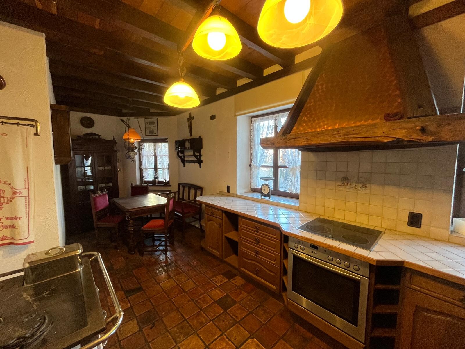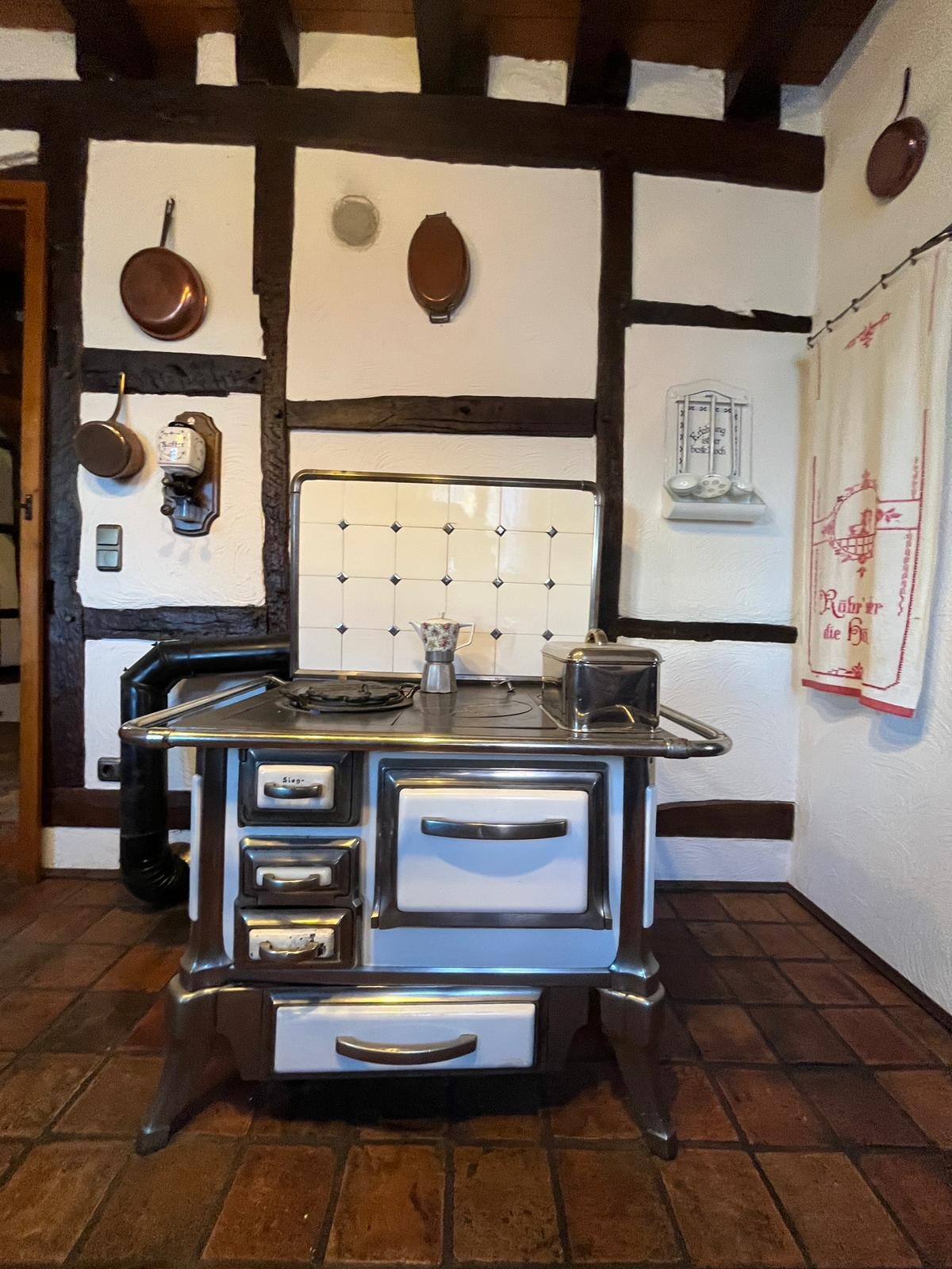 Zwei weitere Öfen in der Küche und im Eingangsbereich sind im Augenblick stillgelegt, können aber, nach Rücksprache mit dem Schornsteinfeger, wieder aktiviert werden.
