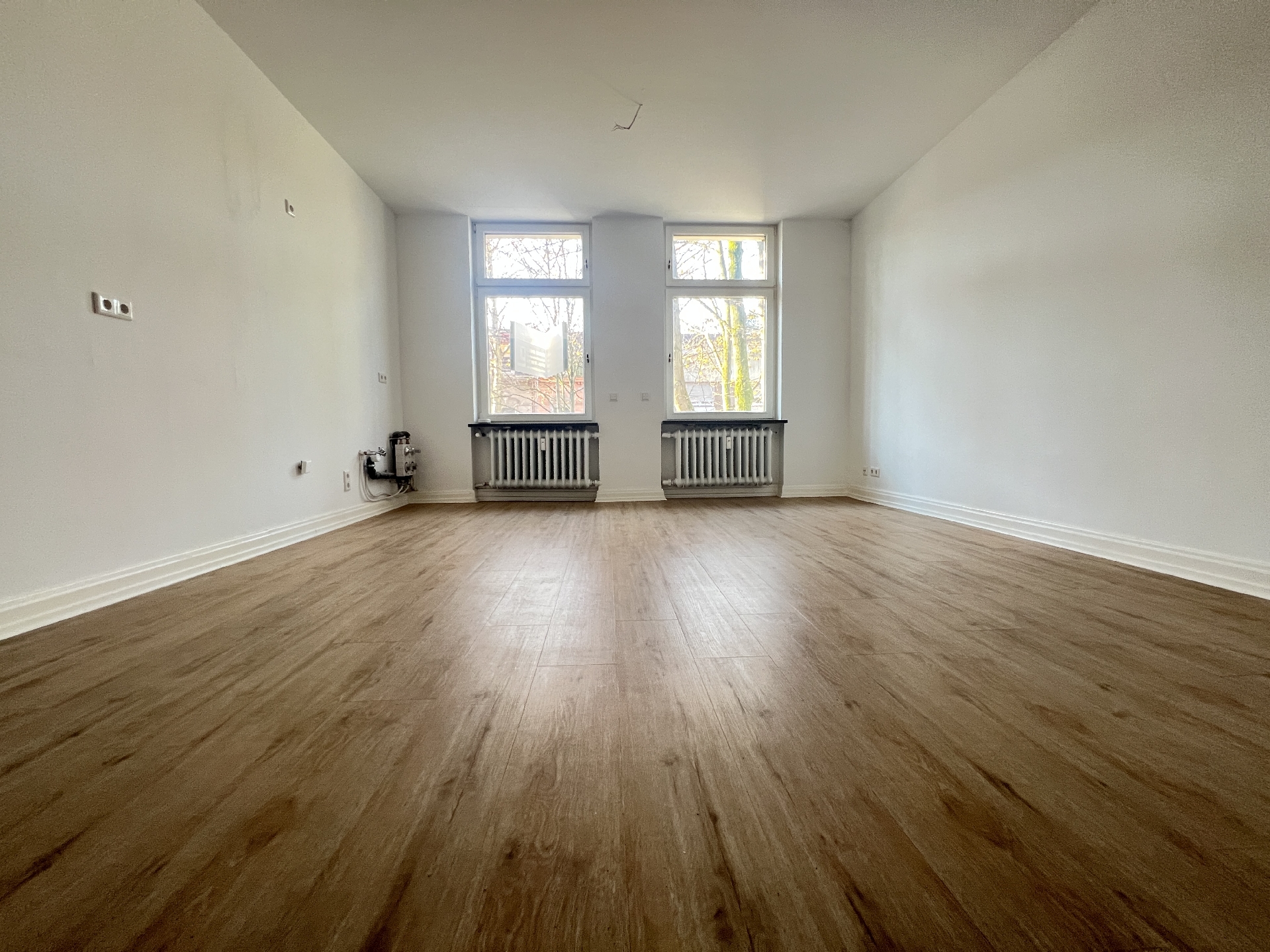 Edle Vinylböden in Holzoptik, verbunden mit hohen Decken und großen Fensterelementen sowie hochwertige Fensterbänke aus belgischem Granit, verleihen dieser Wohnung ein besonderes Ambiente.