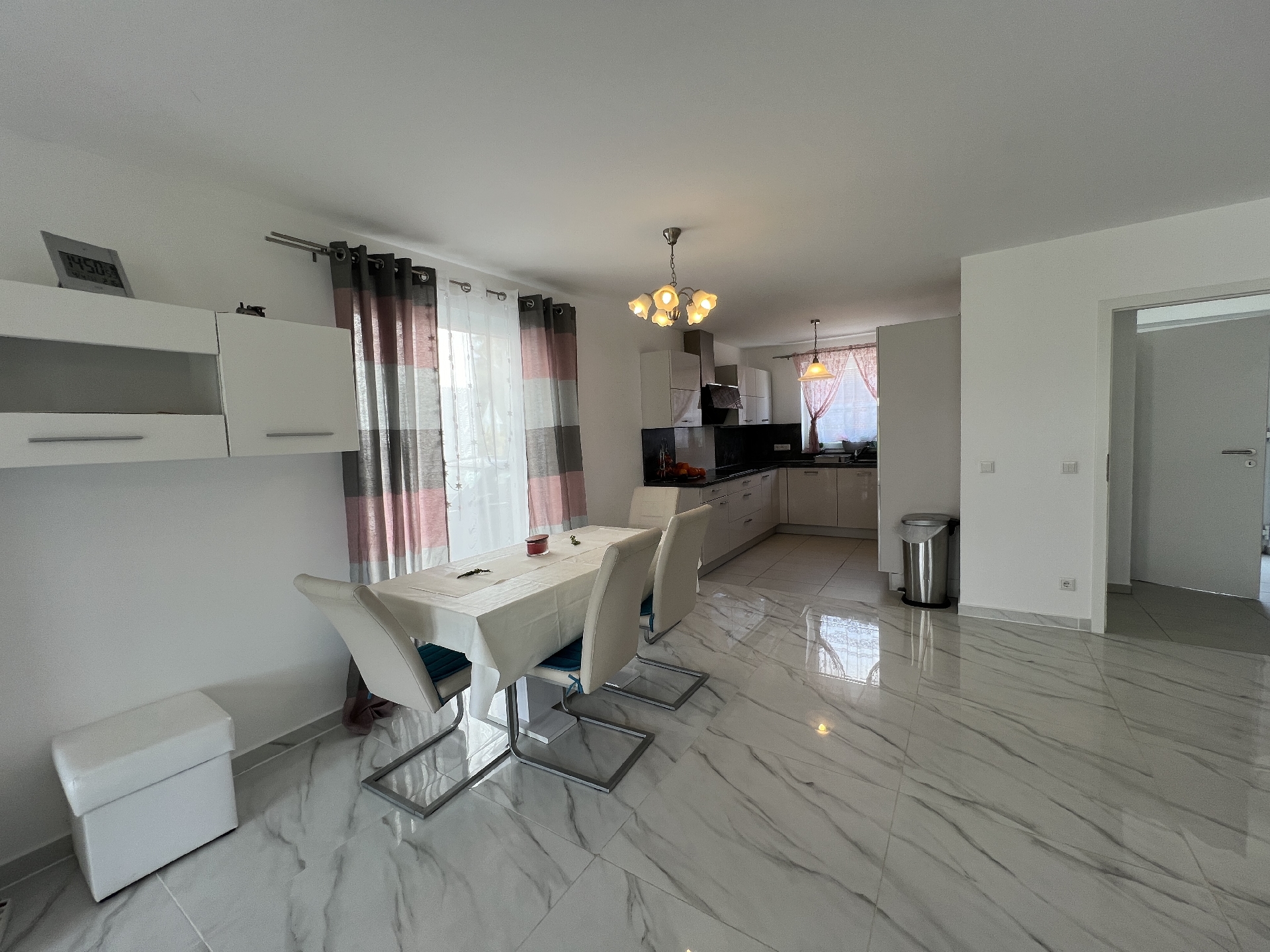 Bodenbeläge: Fliesen im Wohn-/Essbereich, Vinyl in den anderen Räumen