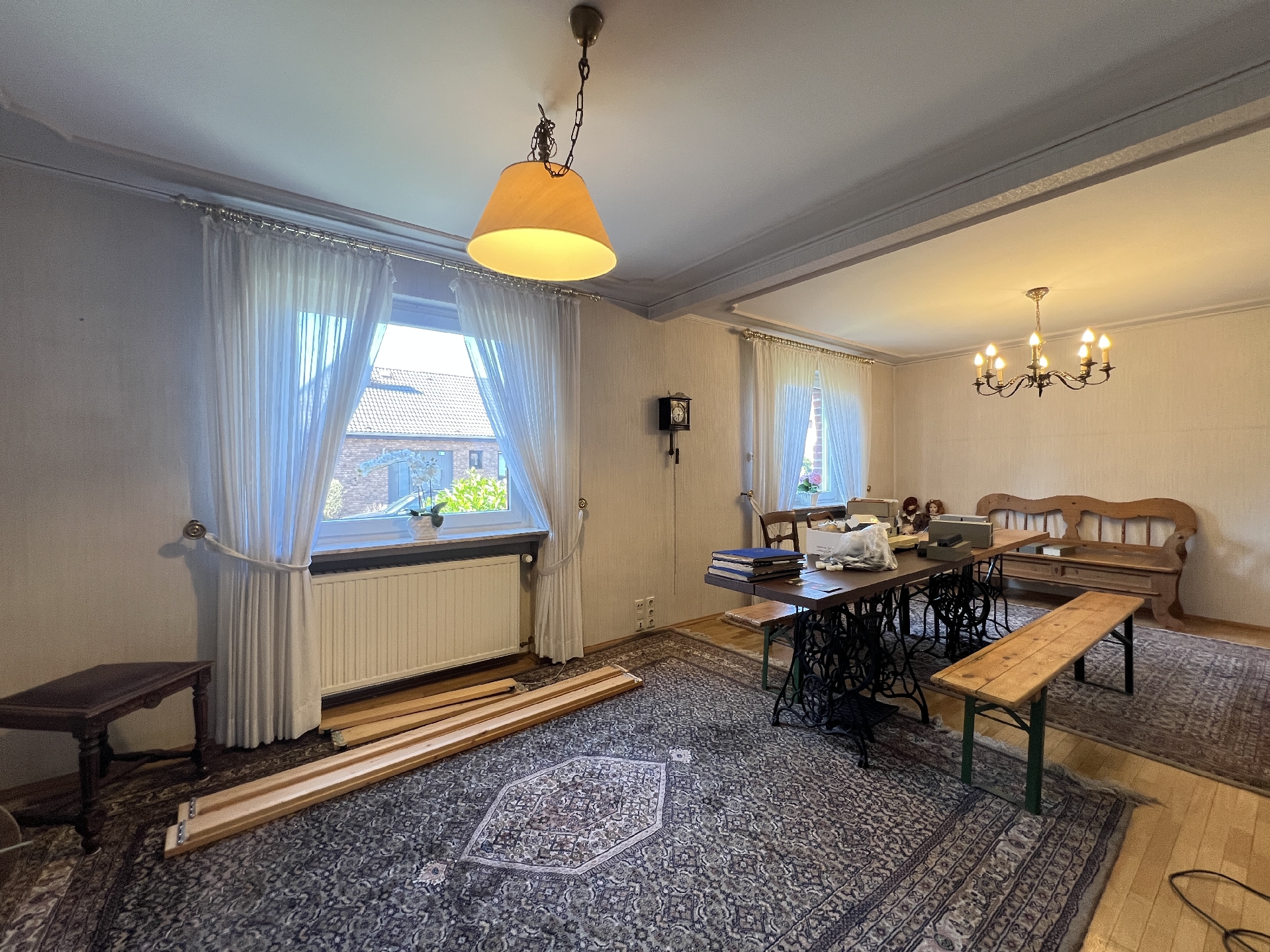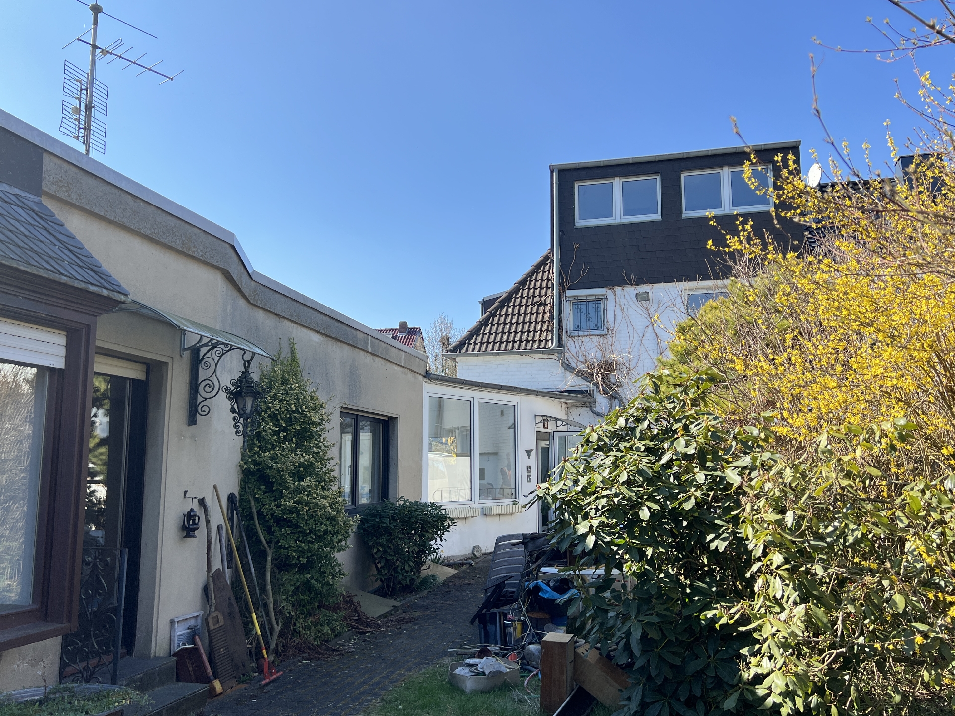 Hinter dem Haus befindet sich ein gepflasterter Hof. Von dort gelangen Sie in den Garten mit Ost-Ausrichtung.Das Haus wurde vom Eigentümer stets gepflegt, bedarf jedoch einer Modernisierung, um es auf den Stand des heutigen Wohnkomforts zu bringen.