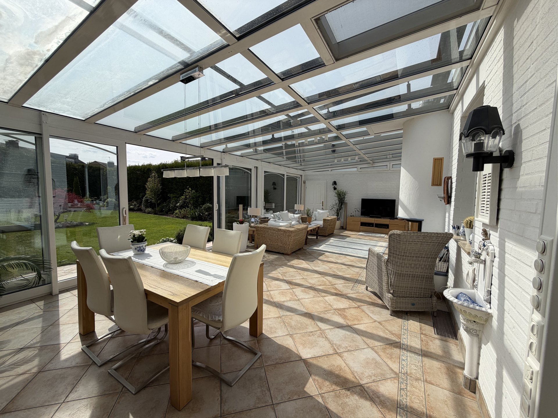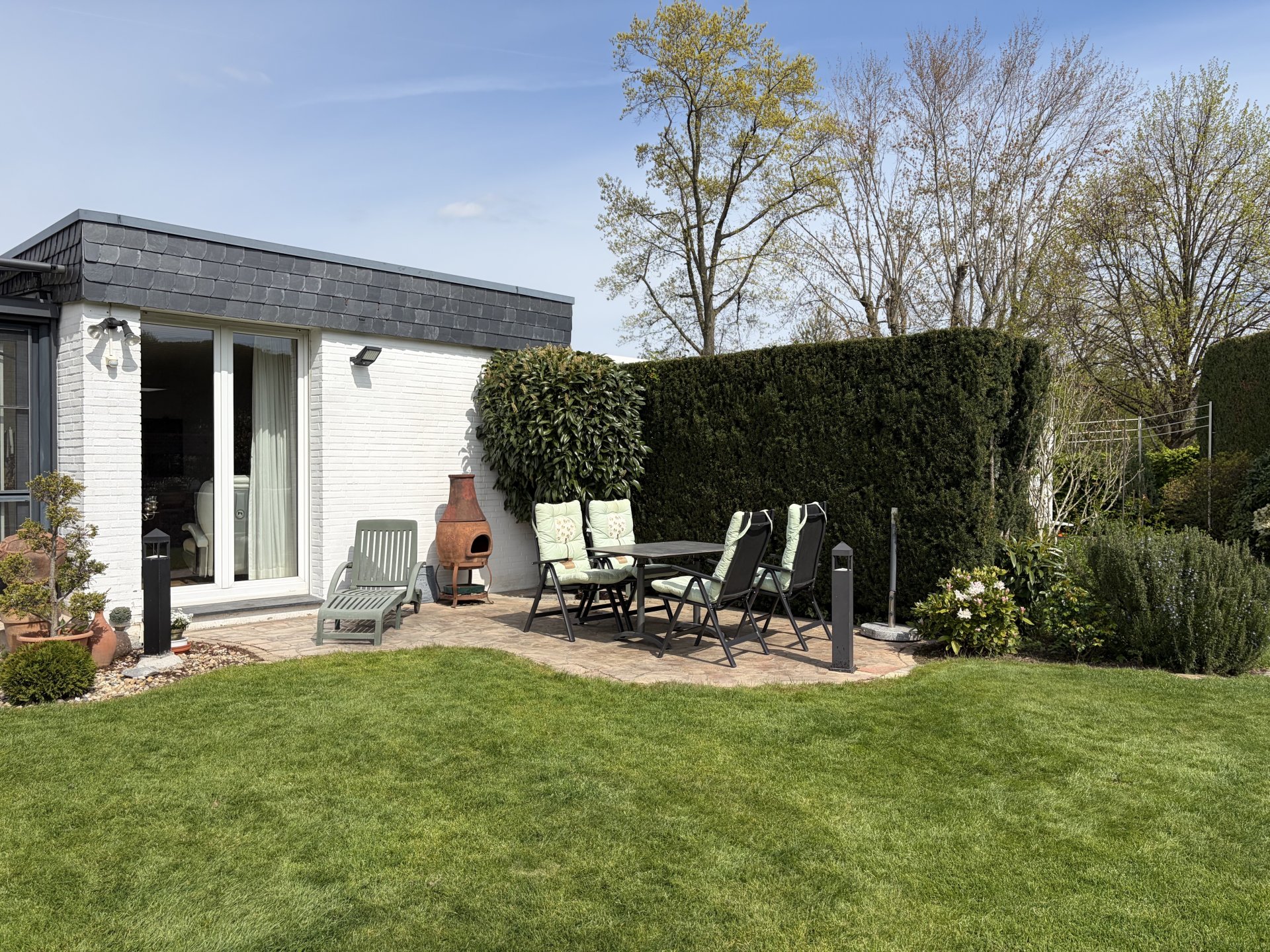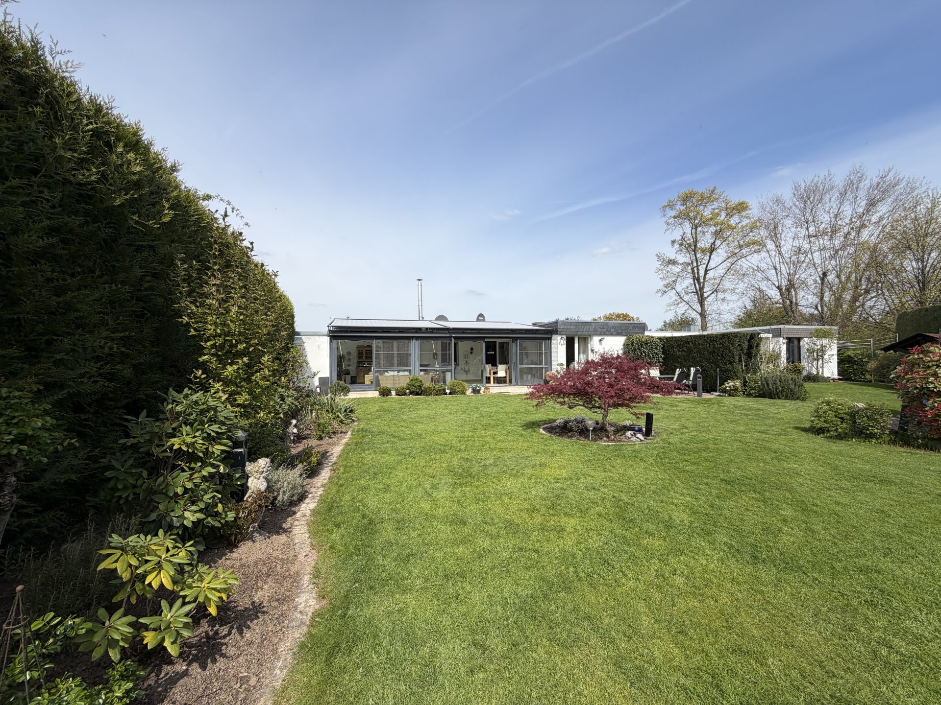 Der Bungalow wurde 2004 um einen schicken, durch einen schicken, beheizten Wintergarten erweitert. Der Wintergarten ist mit einer Fußbodenheizung sowie einer horizontalen und vertikalen Beschattungsanlage ausgestattet. Außerdem wurde ein Kamin in den Wintergarten integriert. Ein weiteres Highlight der Immobilie ist der architektonisch gestaltete Garten. Eine Sonnen-Terrasse und ein weiterer Freisitz sorgen für wunderschöne Sonnen- und Schattenplätze im eigenen Garten, je nach Bedarf. Die ausgedehnte Rasenfläche ist umrandet durch Beete und eine Hecke, die perfekten Sichtschutz nach außen bietet. Eine automatische Bewässerungsanlage sorgt für gleichbleibendes Grün auch in trockenen Perioden.