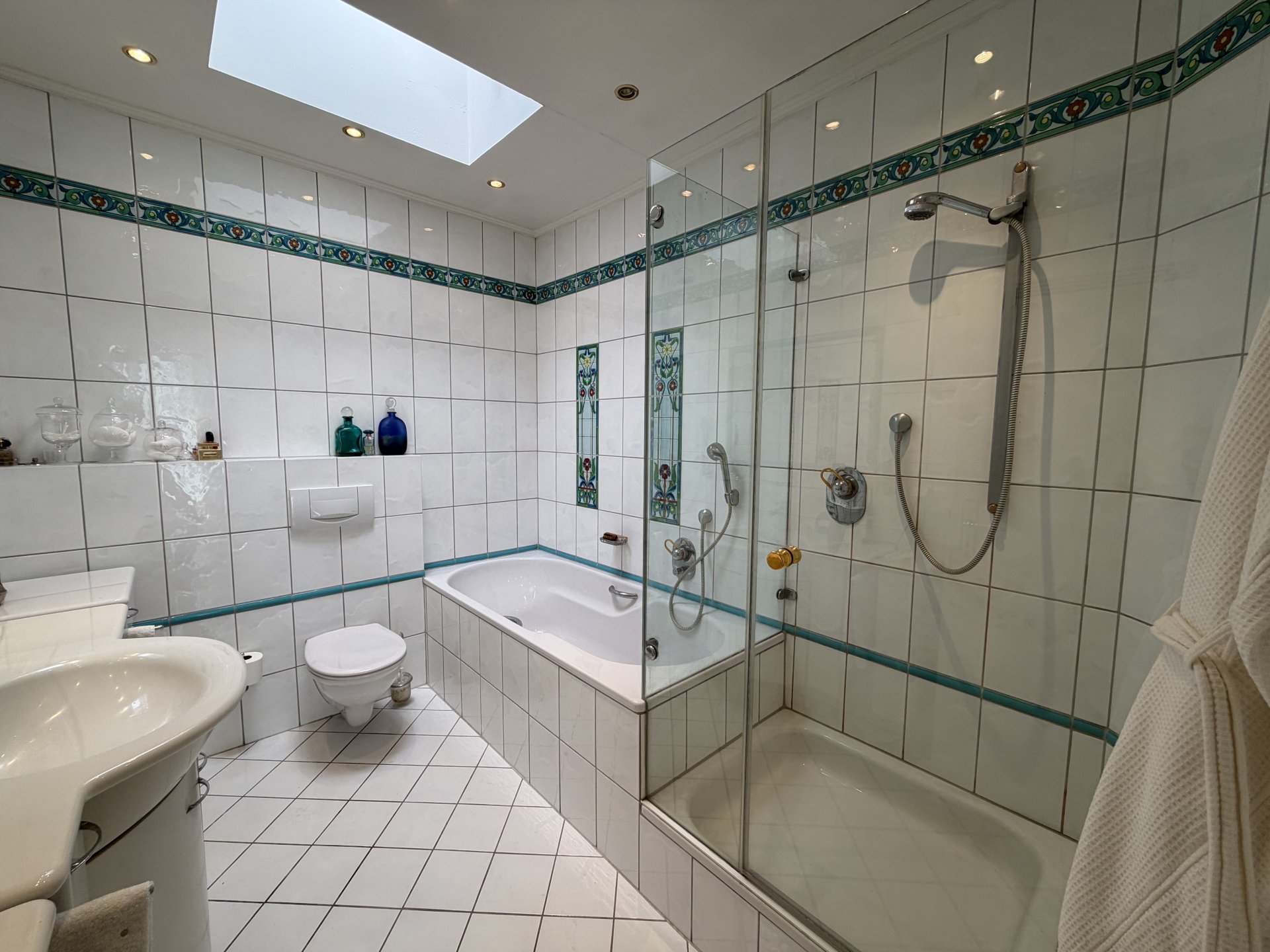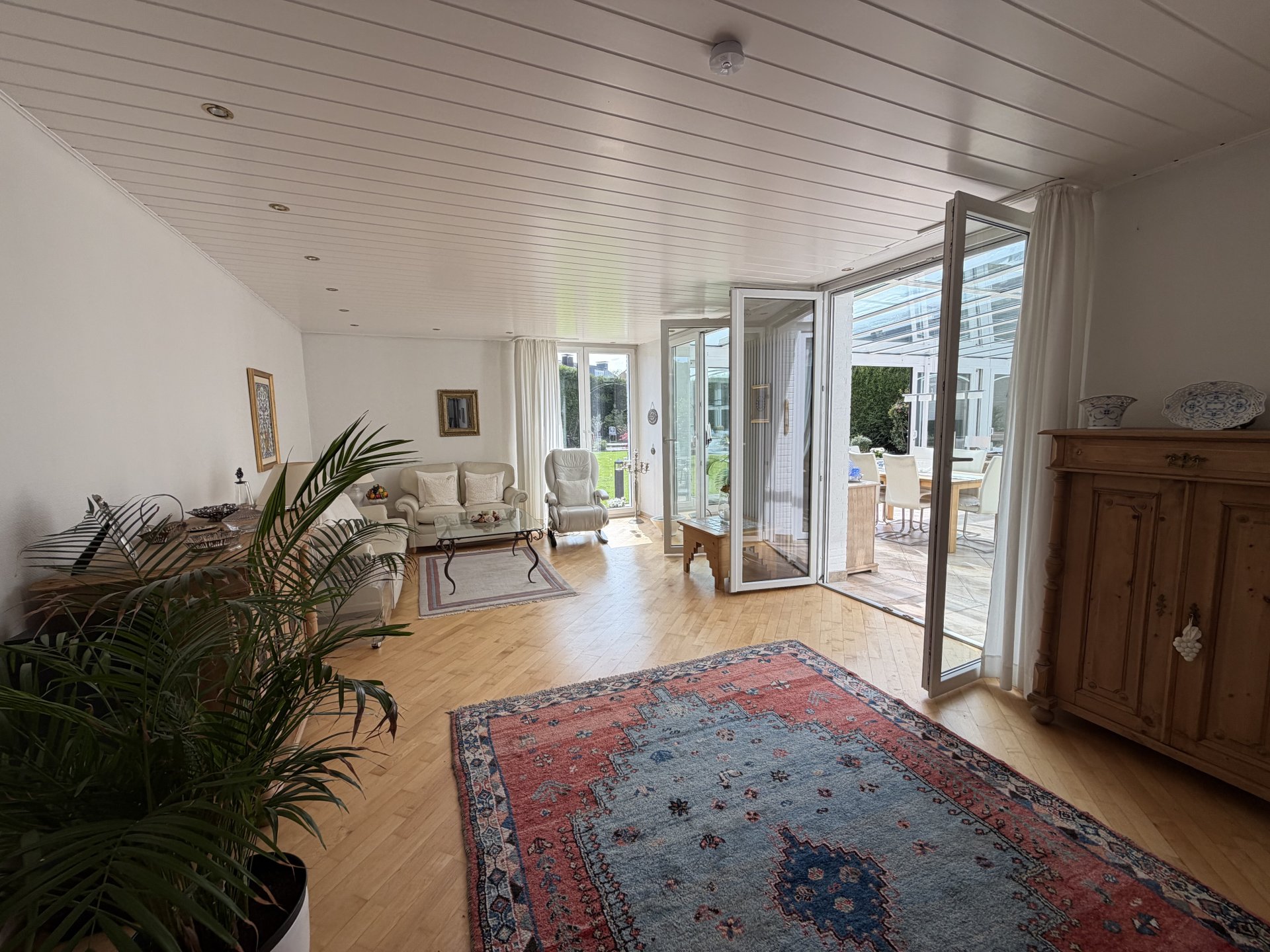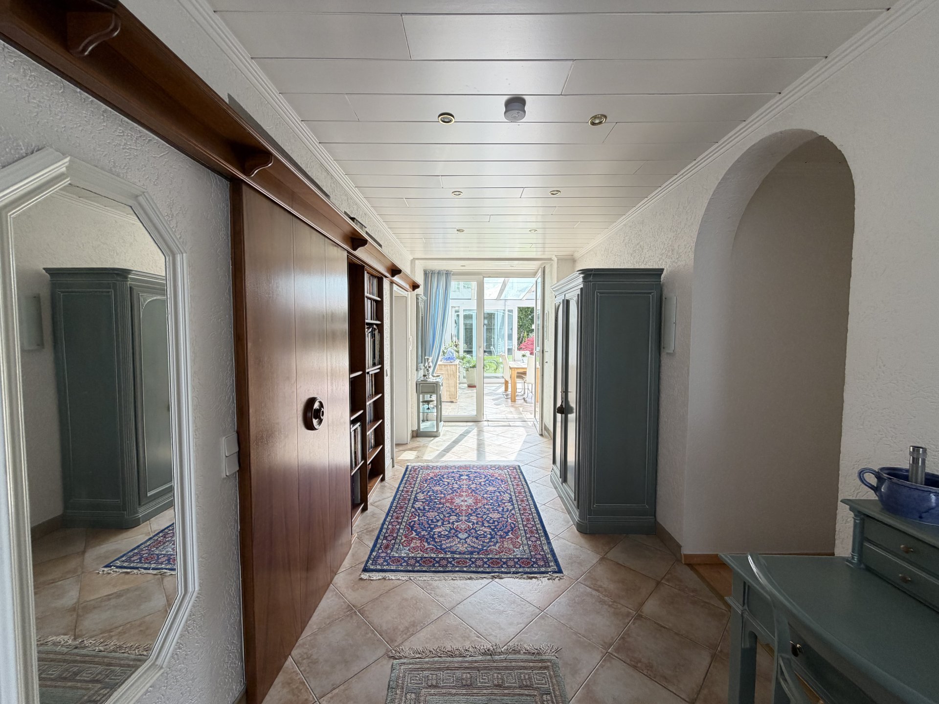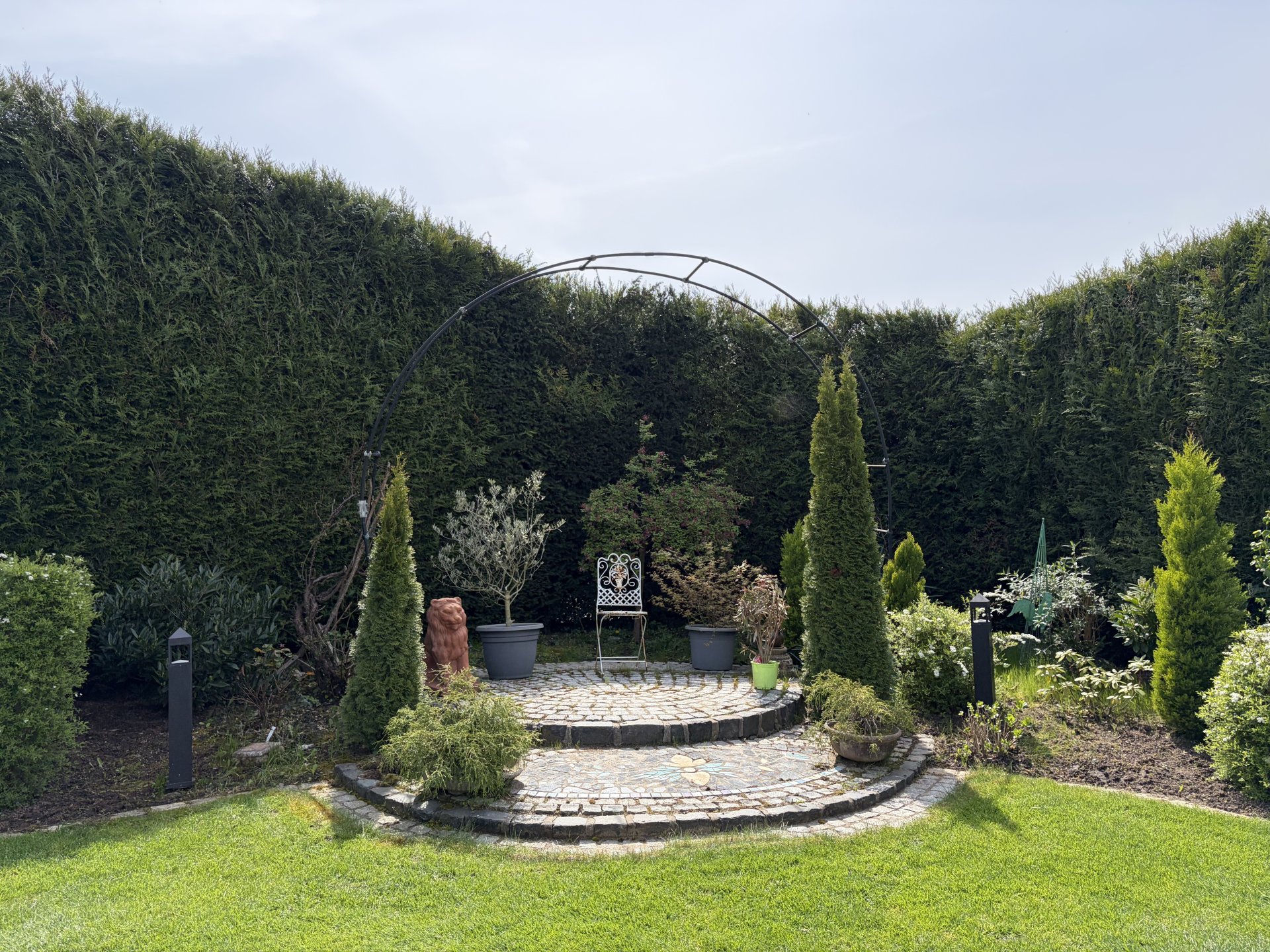 Der Bungalow wurde 2004 um einen schicken, durch einen schicken, beheizten Wintergarten erweitert. Der Wintergarten ist mit einer Fußbodenheizung sowie einer horizontalen und vertikalen Beschattungsanlage ausgestattet. Außerdem wurde ein Kamin in den Wintergarten integriert. Ein weiteres Highlight der Immobilie ist der architektonisch gestaltete Garten. Eine Sonnen-Terrasse und ein weiterer Freisitz sorgen für wunderschöne Sonnen- und Schattenplätze im eigenen Garten, je nach Bedarf. Die ausgedehnte Rasenfläche ist umrandet durch Beete und eine Hecke, die perfekten Sichtschutz nach außen bietet. Eine automatische Bewässerungsanlage sorgt für gleichbleibendes Grün auch in trockenen Perioden.