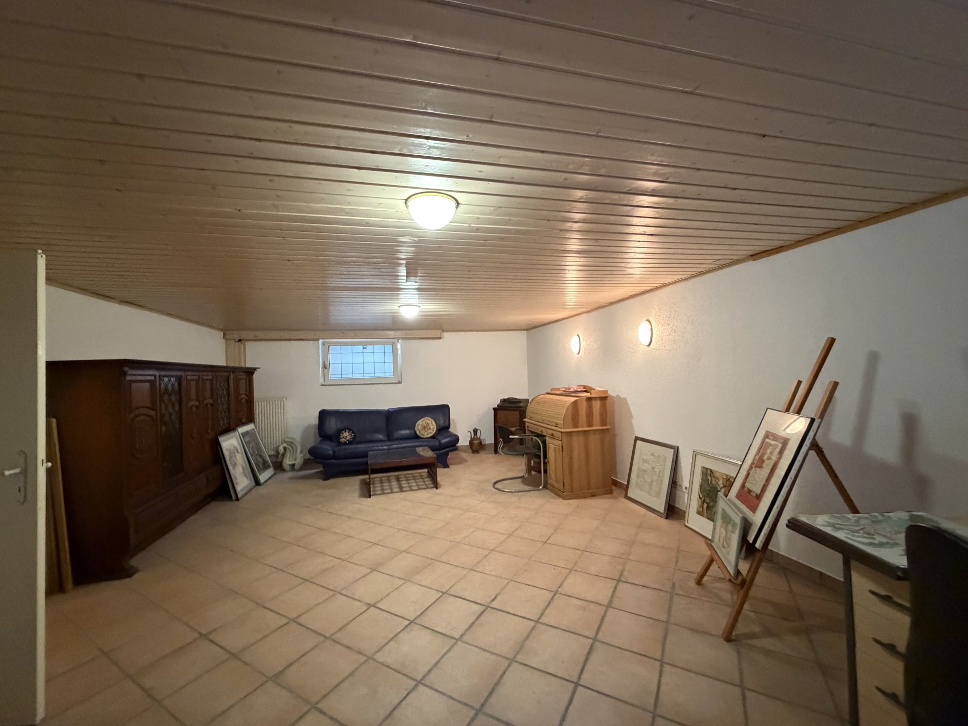 Im Untergeschoss erwartet Sie ein großzügiger Hobbyraum, ein kleinerer, als Gäste-Zimmer gestalteter Raum, die geflieste Waschküche, der Heizungskeller, ein kleines WC sowie ein Vorrats- und Lagerraum.