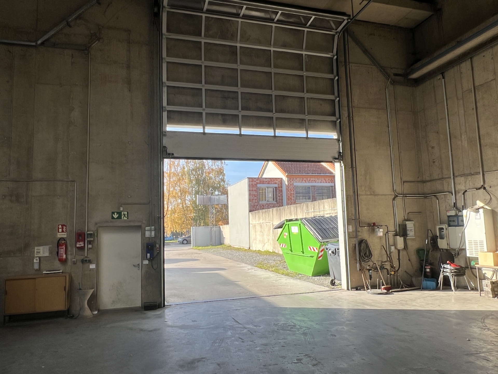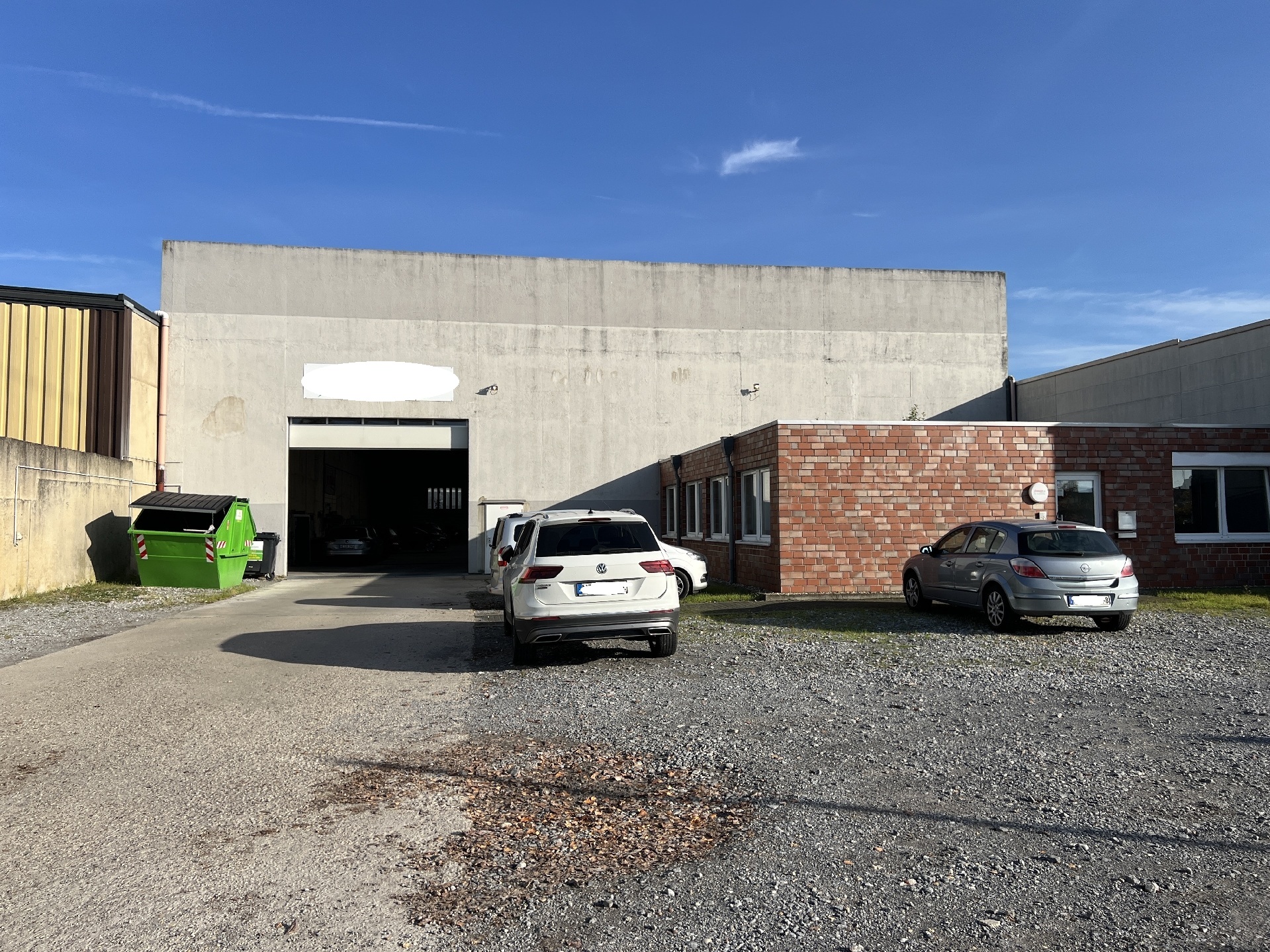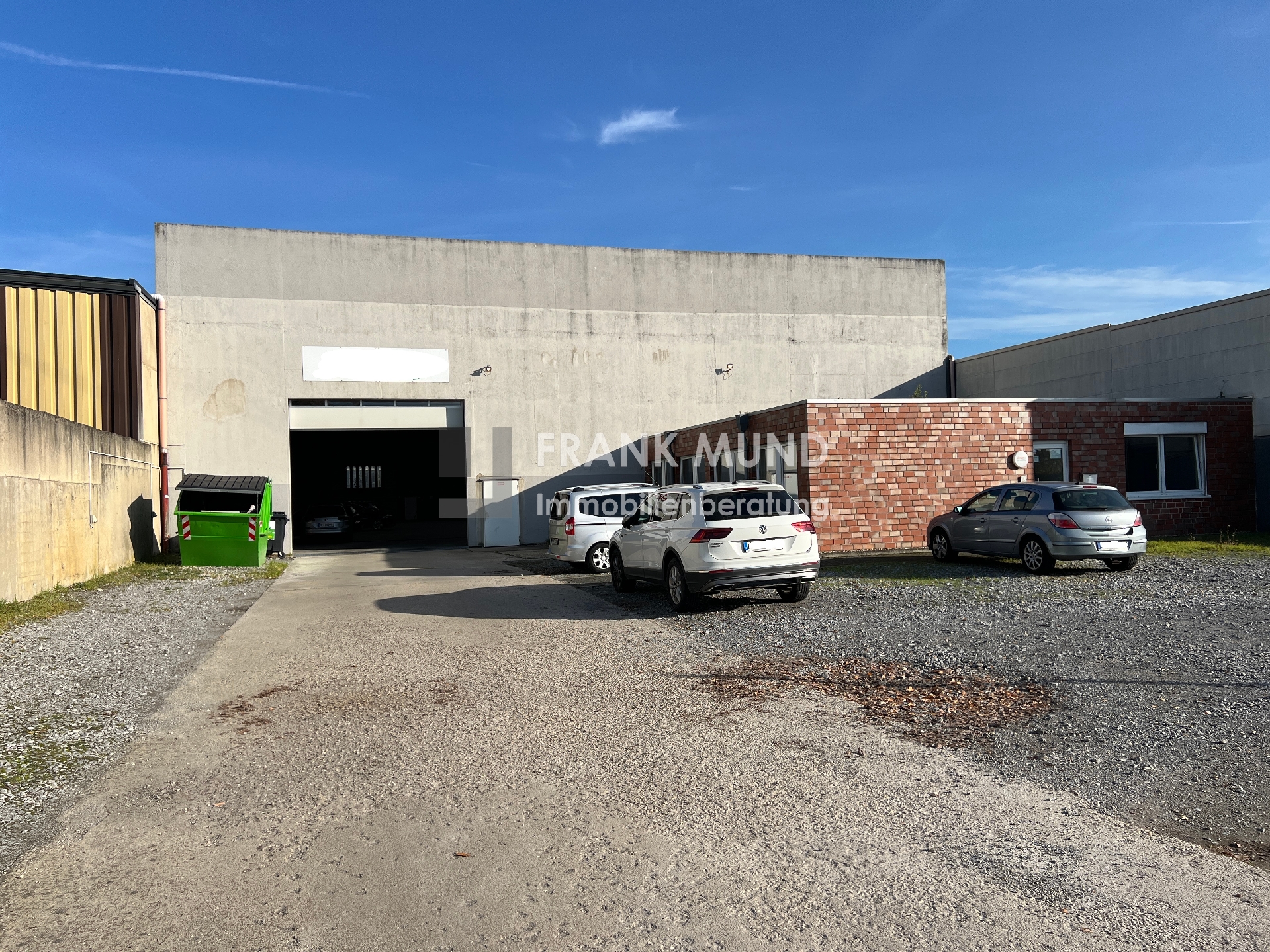Der Gewerbekomplex besteht aus einer rechteckig geschnittenen, 1998 errichteten Halle mit Betonwänden und einem 5 t-Last-Kran. Die Halle ist stützenfrei. Eine mittig im Dach befindliche, längs geschnittene Lichtkuppel sorgt für eine hervorragende, natürliche Belichtung des Innenraums. Der robuste Betonboden eignet sich exzellent zu Lagerzwecken und ist mit sämtlichen Fahrzeugtypen befahrbar. Die ebenerdige Andienung erfolgt über ein Sektionaltor mit Glaselementen. Im Jahr 2007 wurde der Halle ein 1-geschossiger Bürotrakt mit Klinkerfassade vorgesetzt. Vor den Gebäuden befindet sich eine geschotterte Freifläche, die ausreichende Park- bzw. Wendemöglichkeiten für Kunden, Lieferanten und Mitarbeiter bietet.